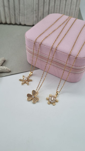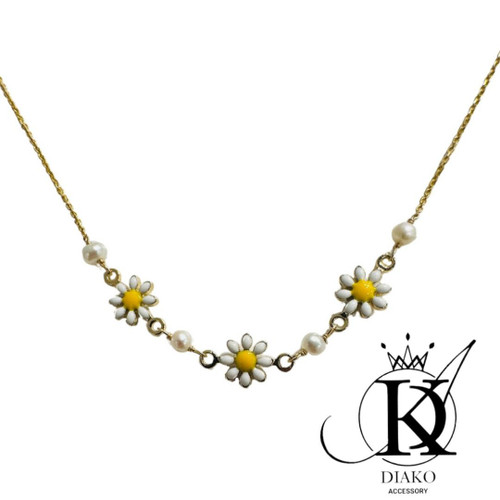 گردنبند طرح یخ نگیندار و طرح مروارید و گل طلایی کد۱۲۰