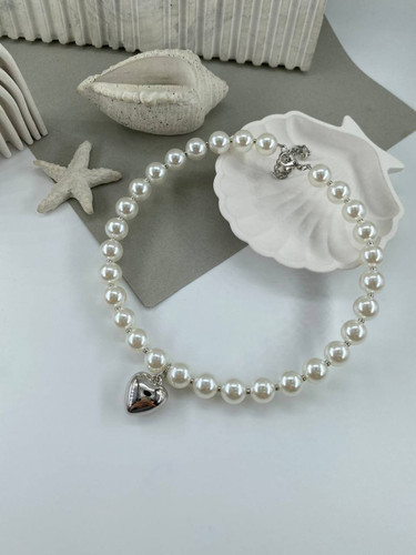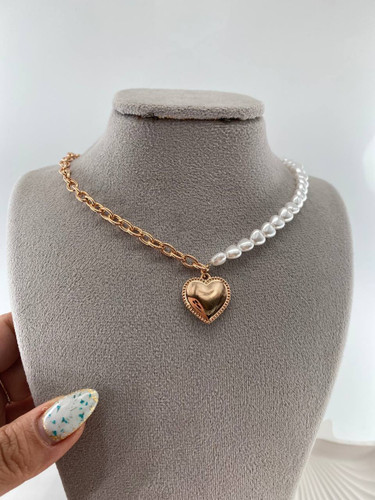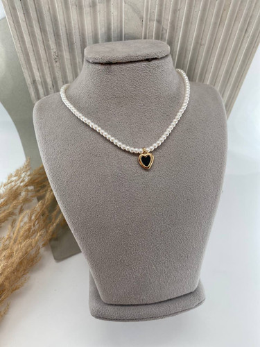گردنبند زنانه مروارید و پلاک قلب کد 1