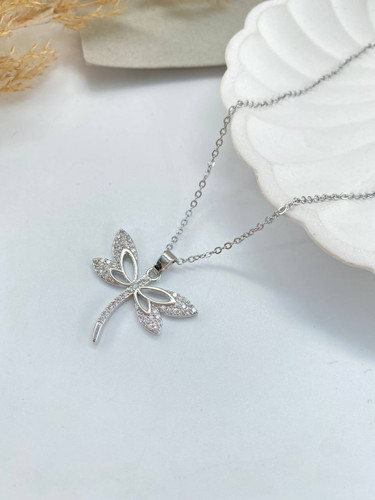 گردنبند زنانه نگین دار طرح پروانه کد ۱۰۸