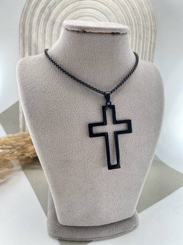 زنجیر و پلاک صلیب مشکی بلند کد ۷۵