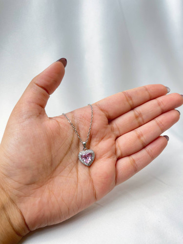 گردنبند قلب کریستالی رز – مدل Love Shine (کد 98)