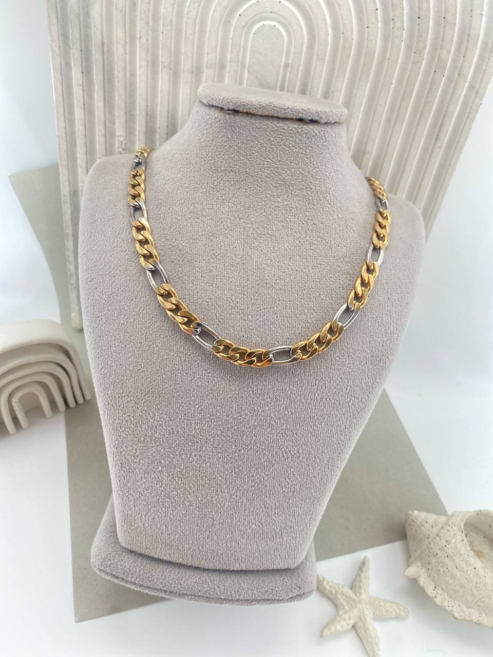گردنبند استیل کبریتی دو رنگ طلایی و نقره ای