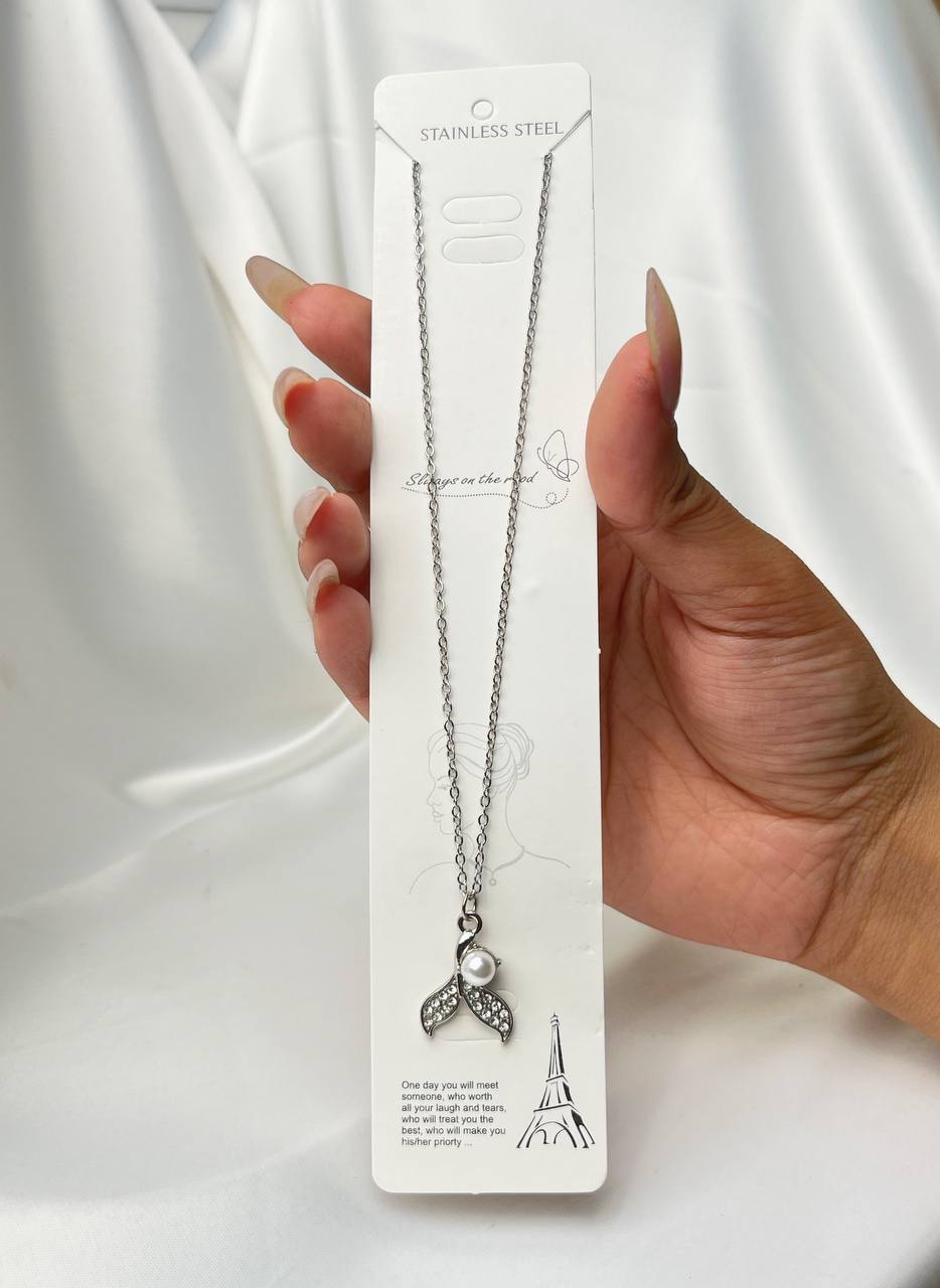 گردنبند استیل طرح دم ماهی با آویز مروارید کد ۵۰