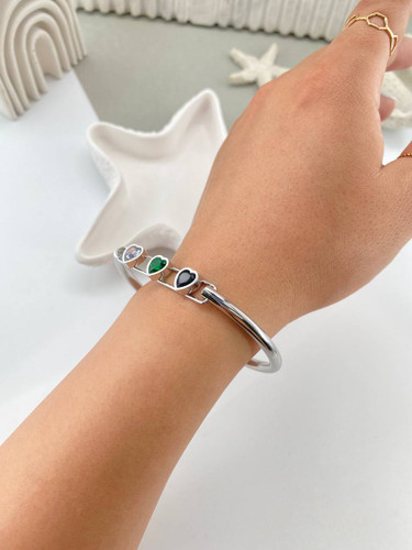 دستنبد زنانه کارتیری یاقوت طرح قلب رنگ سبز کد۱۲۵