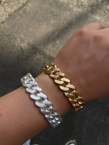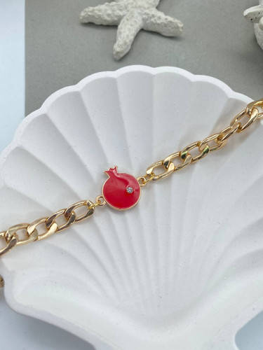 دستبند طرح زنجیری توپی طلایی پلاک میانی نقره کد۳۸۸