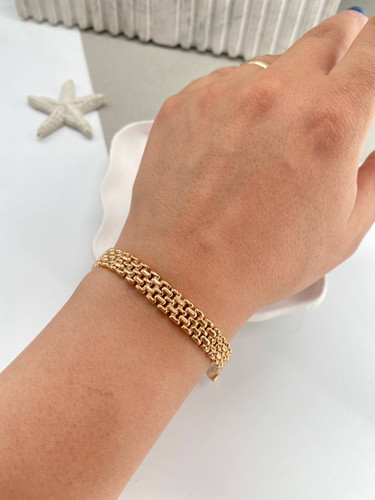 دستبند زنانه طرح حصیری رنگ طلایی کد ۲۲۲