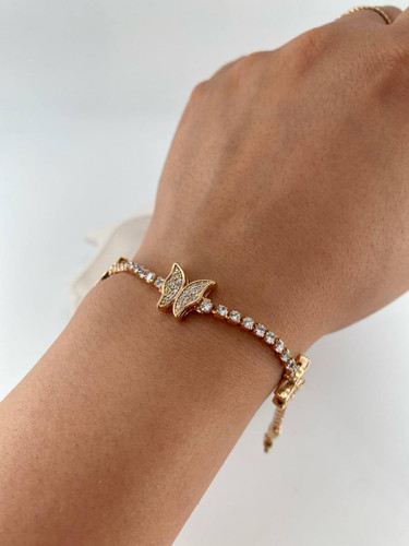 دستبند زنانه نگین دار طرح پروانه طلایی کد ۲۷۹