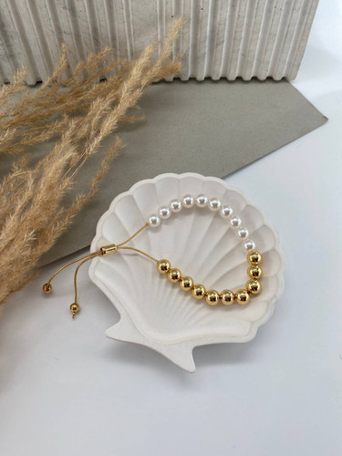 دستبند مرواریدی _توپی طلایی کد۱۳۵