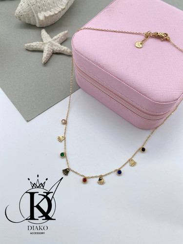 زنجیر و پلاک طرح دست و مروارید رنگی