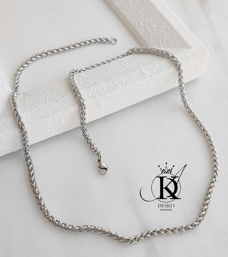 گردنبند استیل بافت مردانه رنگ سیلور