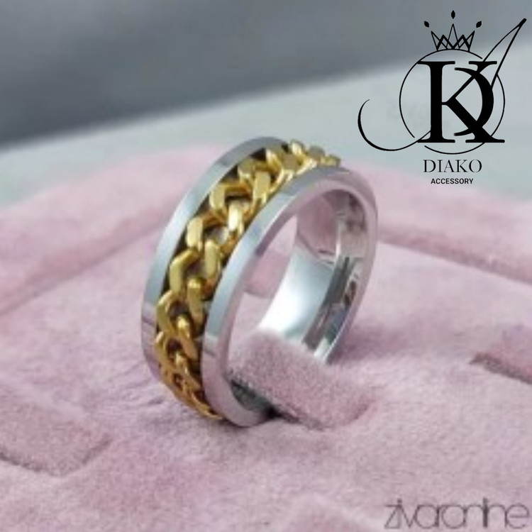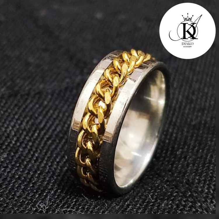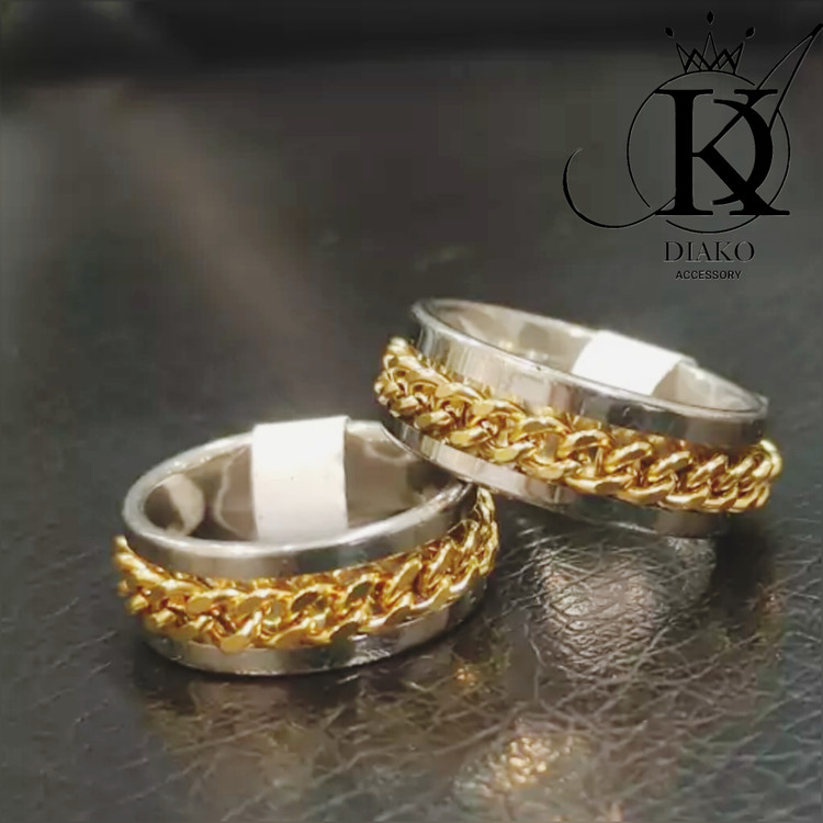 انگشتر طرح کارتیر استیل رنگ نقره ای زنجیر طلایی