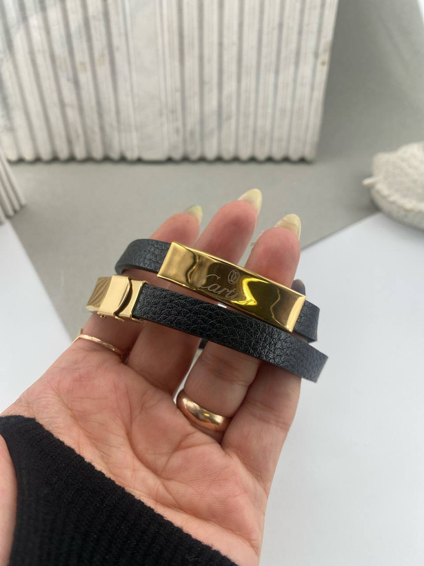 دستبند چرم ضخامت متوسط میانی استیل طلایی