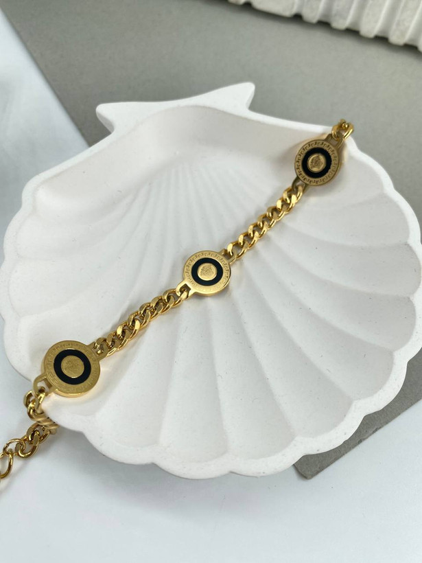 دستبند کارتیر زنانه پلاک گرد مشکی طلایی کد 198