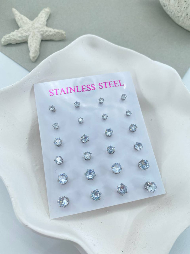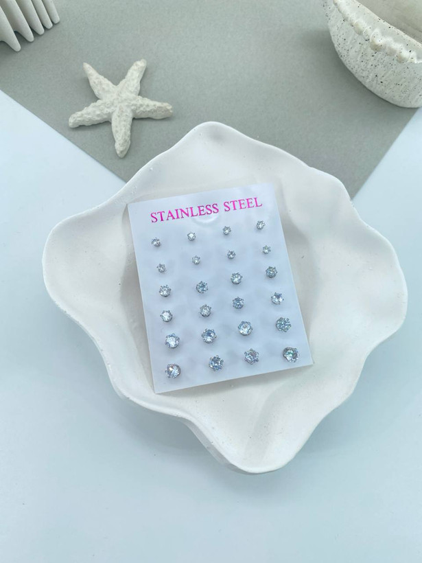 گوشواره دخترانه میخی کریستالی پک کامل 12 تایی