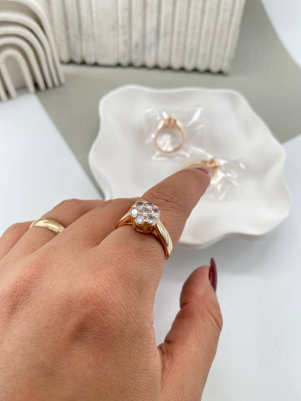 انگشتر زنانه طرح گل نگینی طلایی کد ۷۰