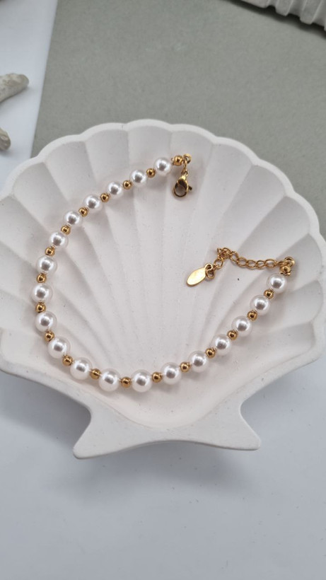 دستبند مرواریدی _توپی طلایی کد۱۳۵