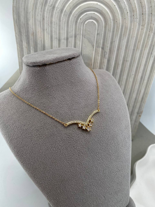 گردنبند زنانه طرح وی نگین دار کد ۱۱۳