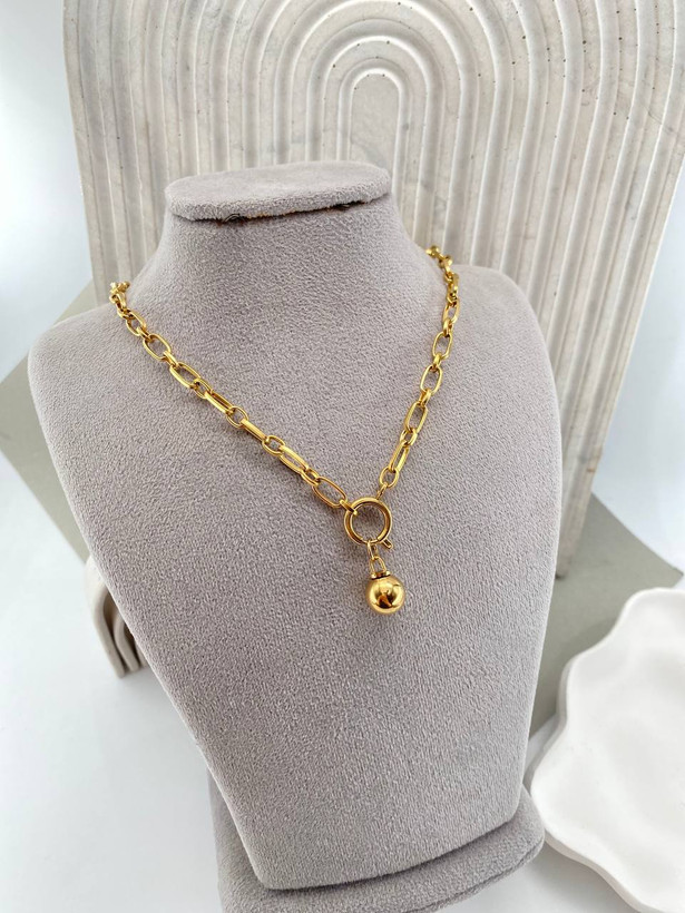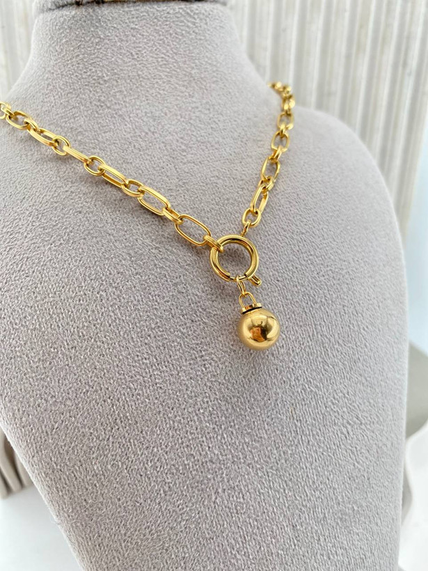 گردنبند زنانه طلایی پلاک توپی کد ۱۲۶