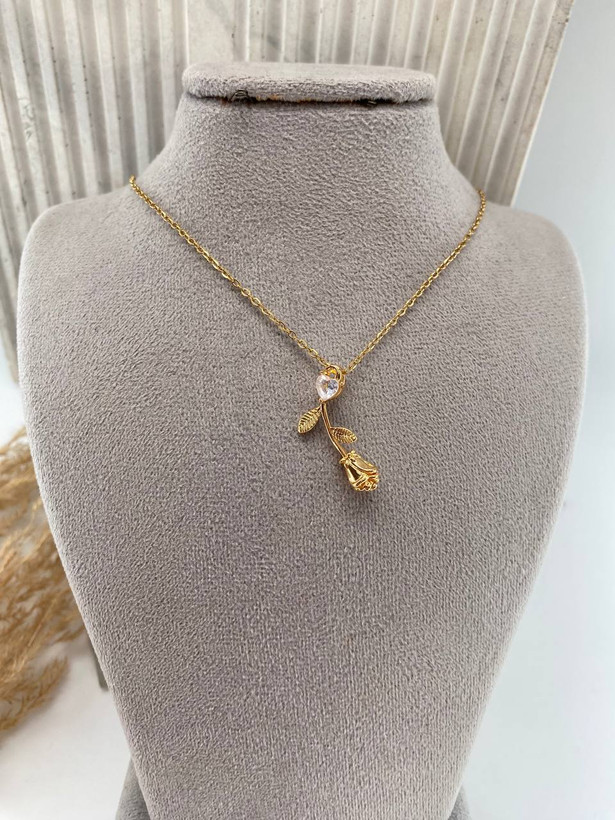 گردنبند زنانه طرح گل و قلب نگین دار کد ۱۲۵