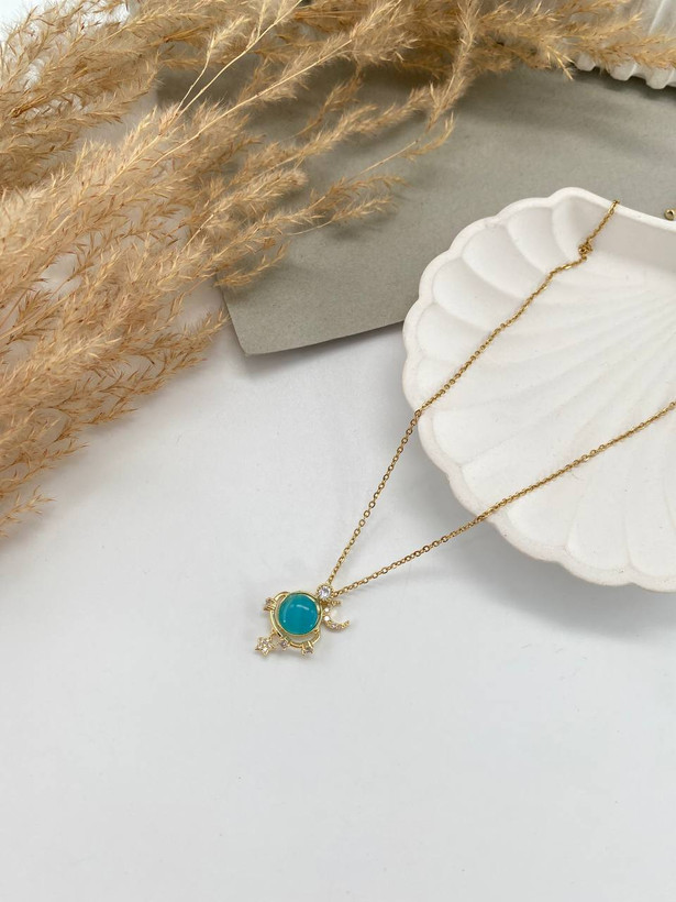 گردنبند زنانه مروارید آبی نگین دار کد ۱۰۸