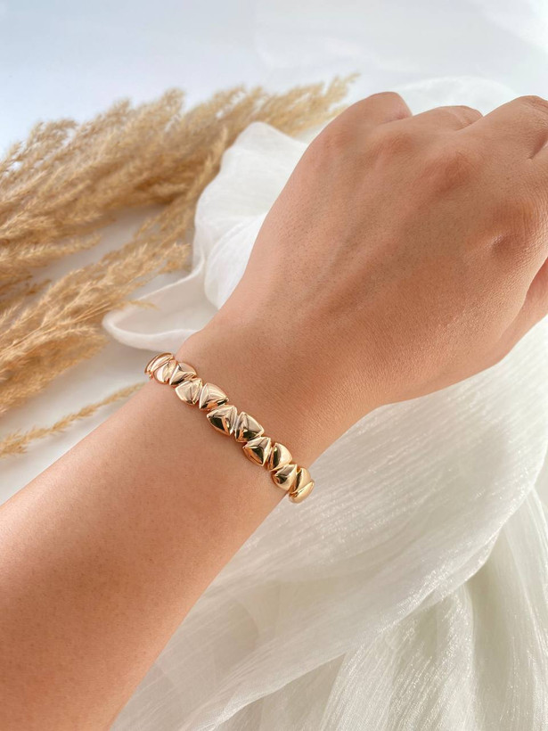 این دستبند طلایی با طراحی گلبرگی و درخشش خاص، جلوهای لوکس و متفاوت به استایل شما میبخشد. انتخابی ایدهآل برای خانمهایی که به دنبال زیبایی، کیفیت و قیمت مناسب هستند. جلوهای لاکچری بدون نیاز به طلا!