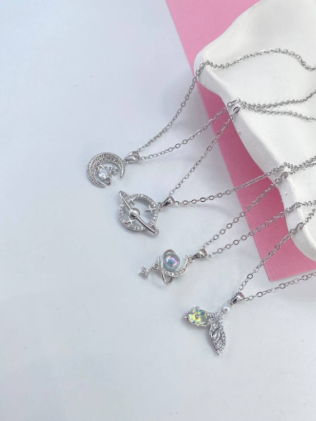 گردنبند نقره‌ای فانتزی دخترانه – مدل‌های فضایی، ماه، پروانه، پری دریایی کد ۱۰۶