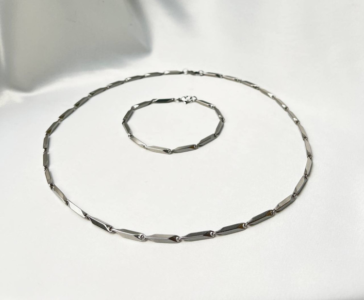 ست زنجیر و دستبند‌ نقره ای مردانه کد 100