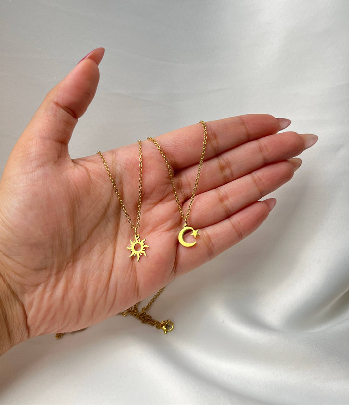 گردنبند طرح ماه و خورشید استیل رنگ طلایی کد 95