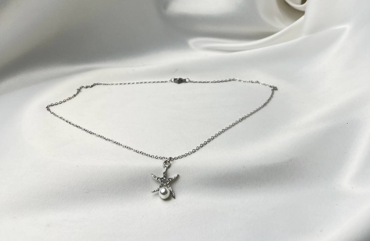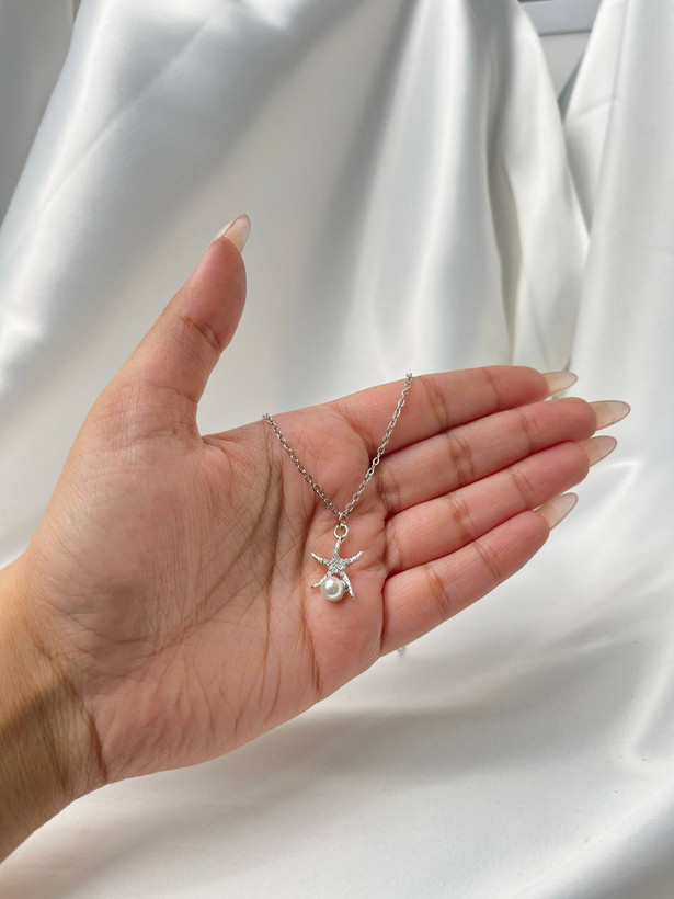 مرواریدش درخشش ملایم داره و ستارهی کوچک کنارش باعث میشه نگاهها به سمت گردن جلب بشه، اما نه خیلی اغراقشده؛ شیک و باوقار.