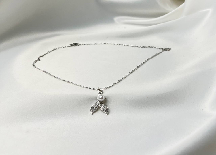 گردنبند استیل طرح دم ماهی با آویز مروارید کد ۵۰