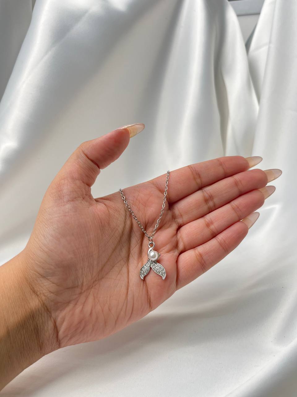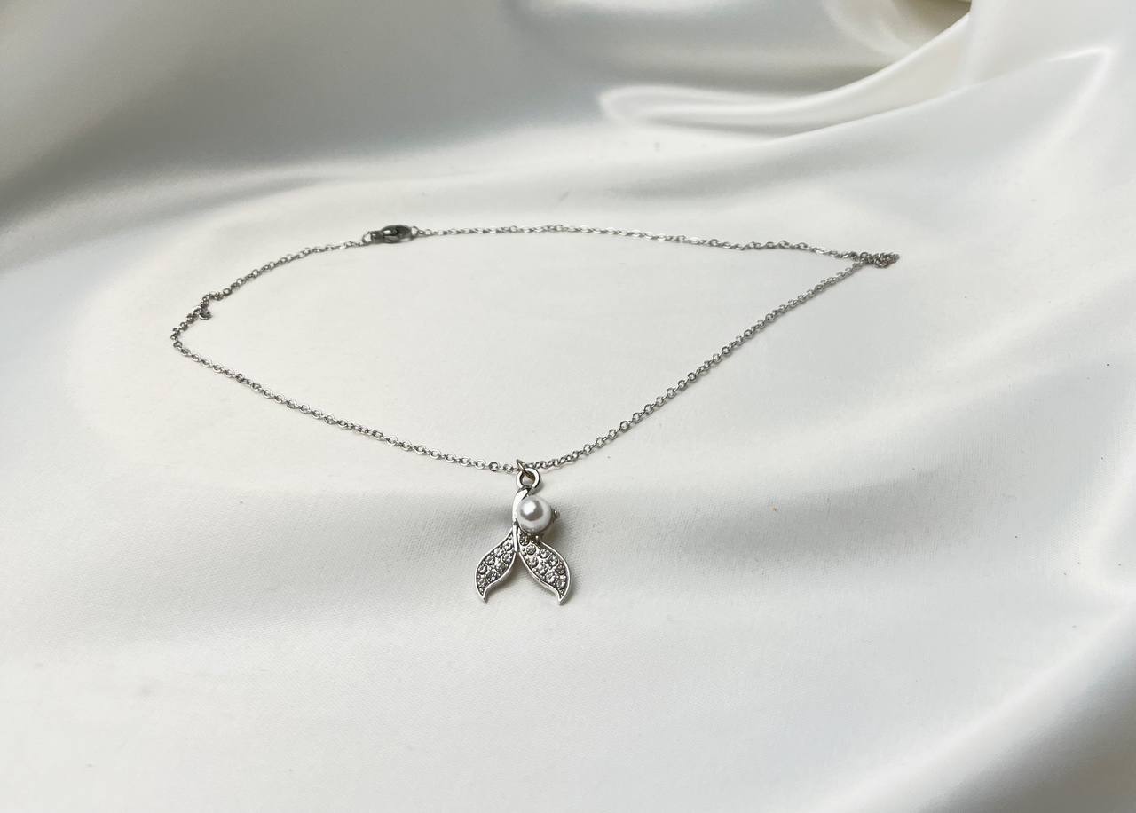 گردنبند استیل طرح دم ماهی با آویز مروارید کد ۵۰