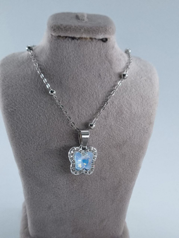 گردنبند پروانه کریستالی طرح ون‌کلیف نقره‌ای – کد ۴۲