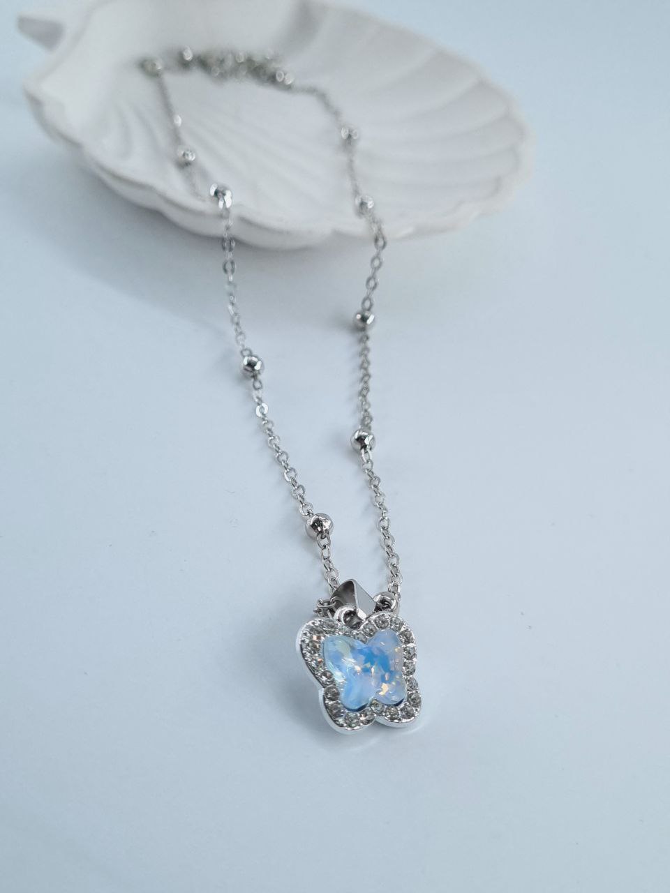 گردنبند پروانه کریستالی طرح ون‌کلیف نقره‌ای – کد ۴۲