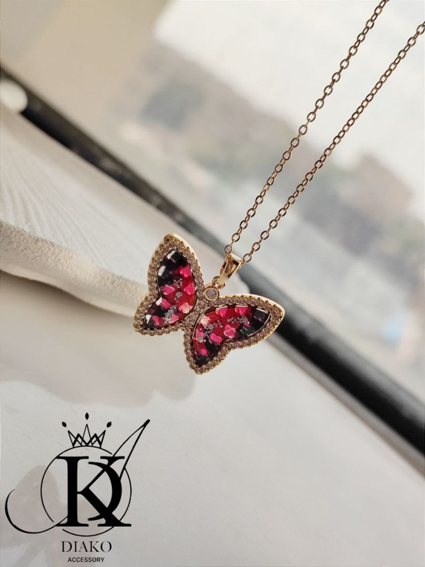 گردنبند استیل دخترانه طرح پروانه ساده دار رنگ ثابت دارای رنگ بندی متنوع کیفیت عالی