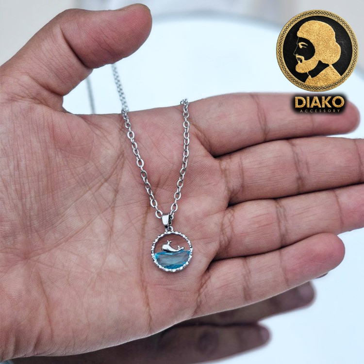 داستانش از این قراره که : این نماد نهنگ 52هرتزیه 🐳 🐋 نهنگابرای اینکه بتونن جفت خودشونو پیدا کنن صداشون میزنن فرکانس صدای این نهنگ بالا تر از حدیه که بقیه نهنگا بتونن بشنون...🥲 بخاطر همین نهنگ 52هرتزی برای همیشه تنها موند که صداش توی اقیانوس شنیده میشه و صداش رو این ویدیو هست ...🥺 منم براتون گردنبندشو آوردم تا به کسی که دوسش داری هدیه بدی ...🩵 زنجیرش رنگ ثابت و ضد حساسیت هست ☺️ و نهنگ و دریا به پلاکش مخراج شده و نمیوفته ☺️