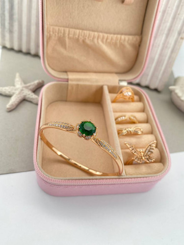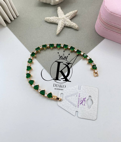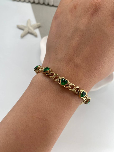 دستنبد زنانه کارتیری یاقوت طرح قلب رنگ سبز کد۱۲۵