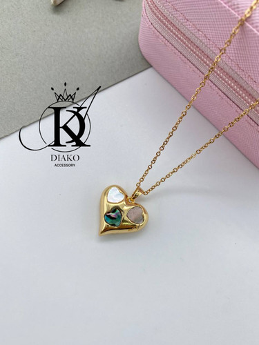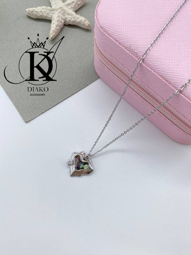 پلاک و زنجیر طرح قلب کریستالی هفت رنگ