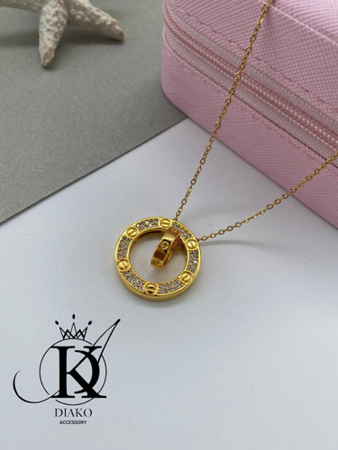 پلاک و زنجیر حلقه ای نگین دار طلایی