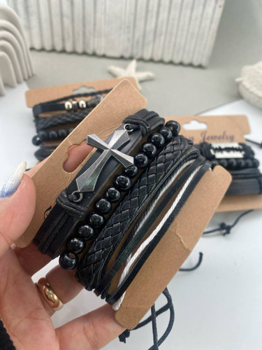 دستبند بنگل پیچی مردانه رنگ مشکی
