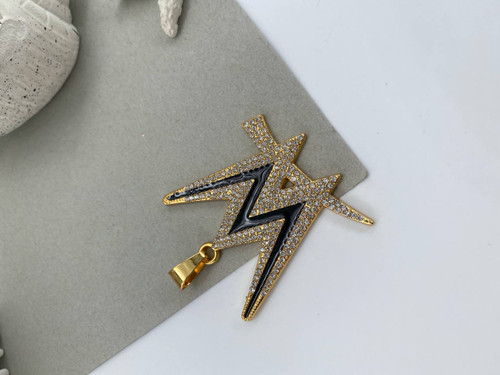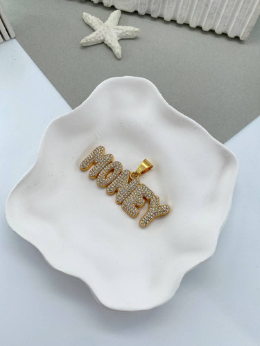 پلاک طرح ام(M)نگین دار رنگ طلایی