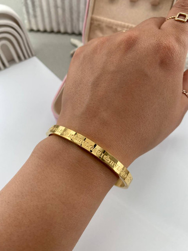 دستبند زنانه طرح برجسته رنگ طلایی کد ۳۰۳