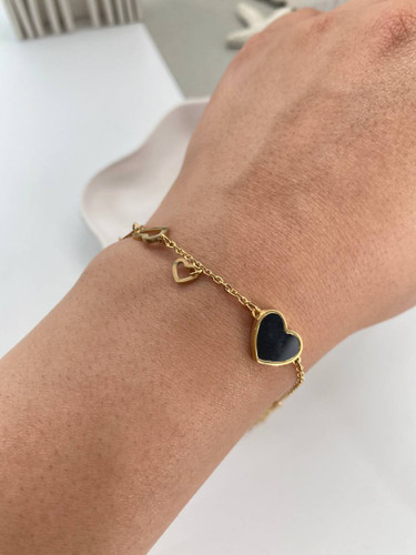 دستبند زنانه قلب مشکی پلاک دار کد ۱۴۲
