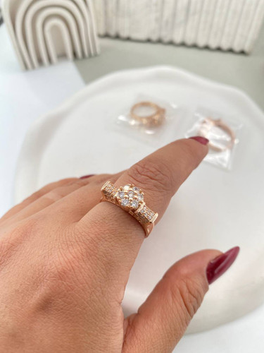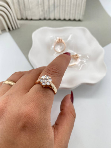 انگشتر زنانه طرح گل نگینی طلایی کد ۷۰