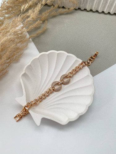 دستبند طرح عینکی فول نگین طلایی کد۷۶۹
