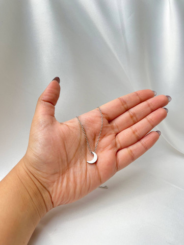 گردنبند استیل طرح هلال ماه طلایی و نقره‌ای کد75