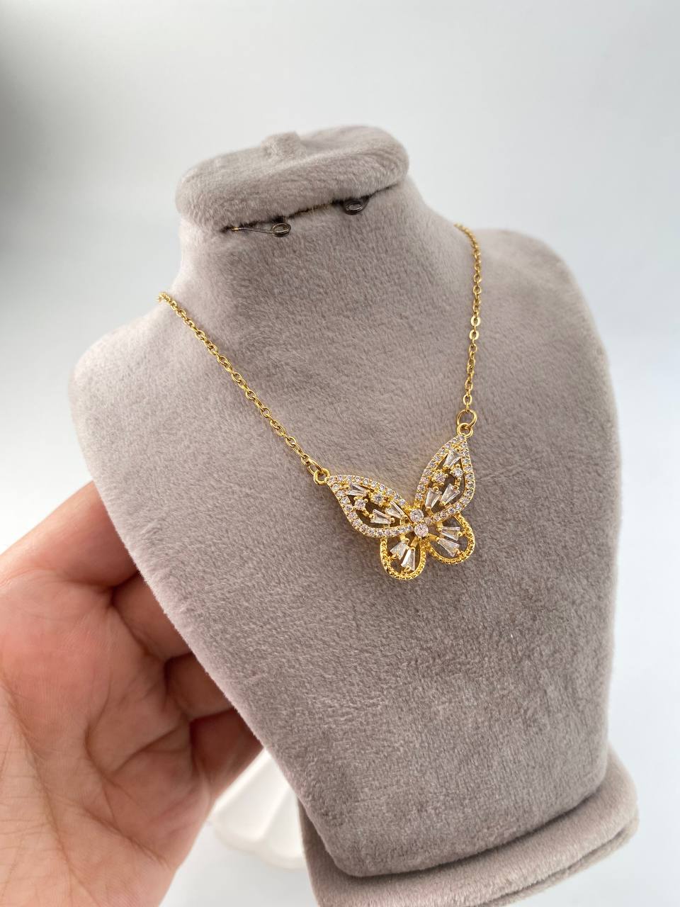 گردنبند زنانه طرح پروانه نگین دار طلایی کد۱۲۰